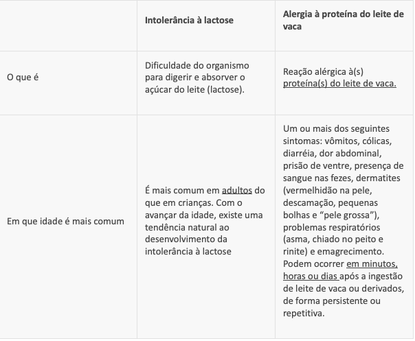 Alergia à proteína do leite de vaca e intolerância à lactose são diferentes, mas podem ser confundidas. Por isso, é fundamental saber diferenciá-las. A Lactose é um açúcar e não provoca alergia, ou seja, não existe alergia à lactose!
